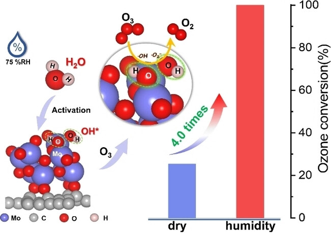 高濕度環(huán)境下臭氧在氧化鉬/石墨炔納米墻分解機(jī)制研究示意圖