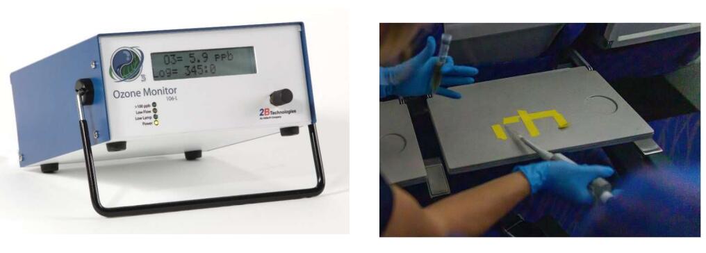 2B Tech 儀器的作用:106-L 型在整個飛機消毒過程中監測臭氧濃度。