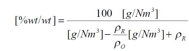 現在,“濃度”[%wt/wtl可以根據“濃度”[g/Nm]計算: