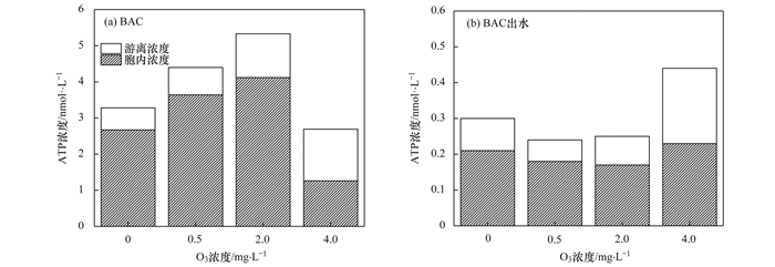 不同臭氧濃度條件下BAC和BAC出水的ATP特征